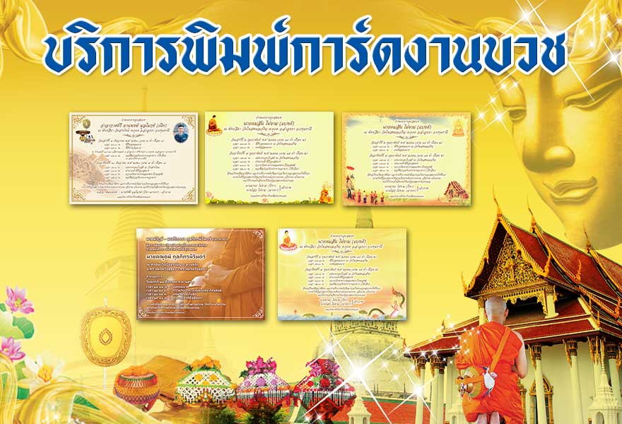 การ์ดงานบวช การจัดพิมพ์การ์ดงานบวชเป็นสิ่งสำคัญที่ช่วยแจ้งให้ผู้คนทราบถึงรายละเอียด และความสำคัญของงานบวช ข้อมูลที่ใช้ในการพิมพ์การ์ดควรครอบคลุม และชัดเจน เพื่อให้ผู้รับทราบได้รู้ข้อมูลที่จำเป็นอย่างครบถ้วน